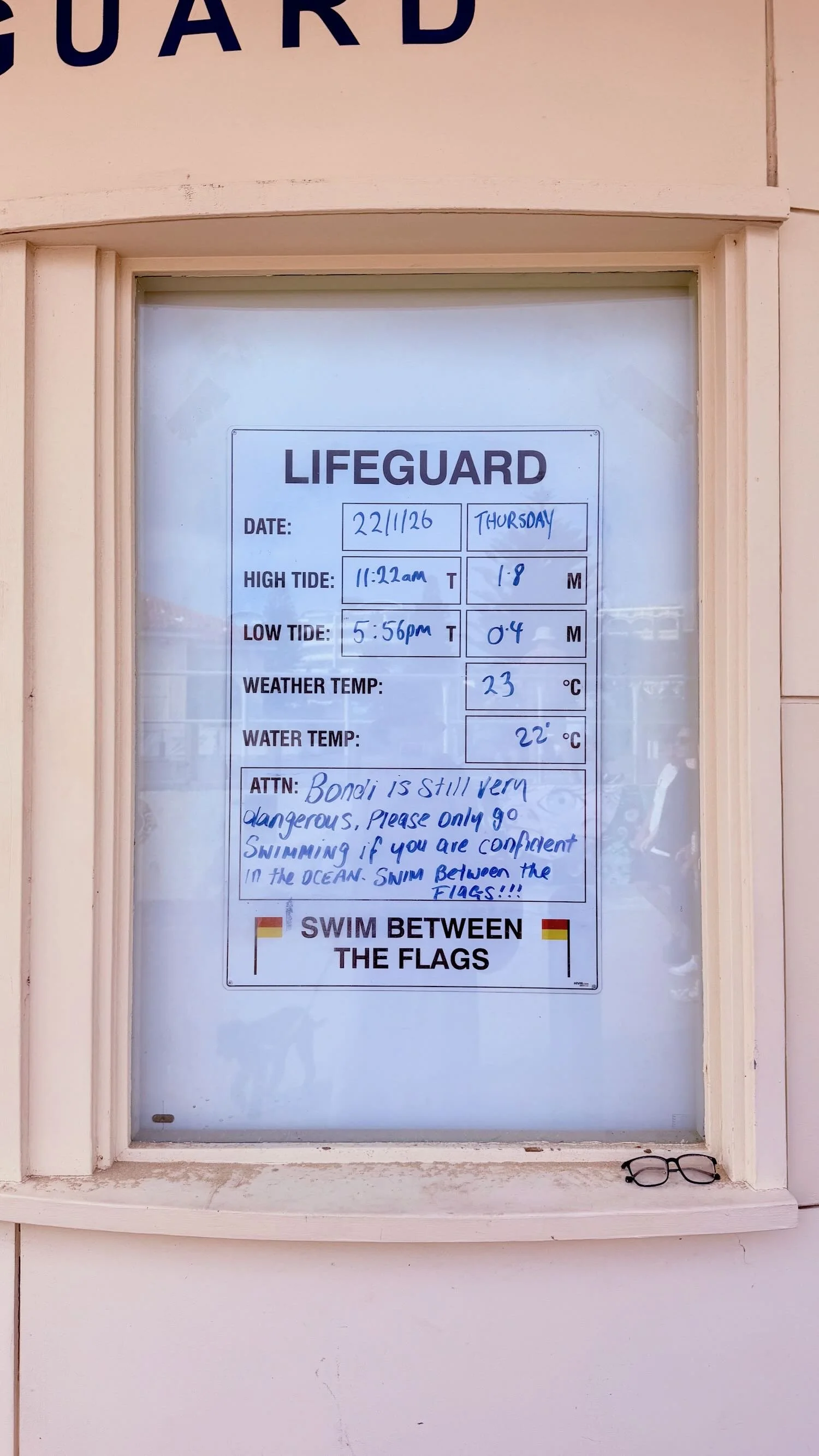 Lifeguards’ warning. And a pair of specs in case you need to see more clearly